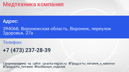 Медтехника, компания по адресу 394068, Воронежская область, Воронеж, переулок Здоровья, 27а в дальнейшем Организация, размещена в следующих категориях: