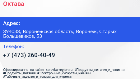 Октава по адресу 394033, Воронежская область, Воронеж, Старых Большевиков, 53 в дальнейшем Организация, размещена в следующих категориях: