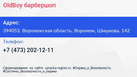 OldBoy, барбершоп по адресу 394053, Воронежская область, Воронеж, Шишкова, 142 в дальнейшем Организация, размещена в следующих категориях: