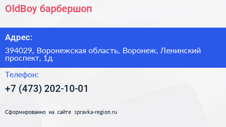OldBoy, барбершоп по адресу 394029, Воронежская область, Воронеж, Ленинский проспект, 1д в дальнейшем Организация, размещена в следующих категориях:
