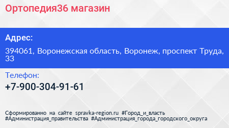 Ортопедия36, магазин по адресу 394061, Воронежская область, Воронеж, проспект Труда, 33 в дальнейшем Организация, размещена в следующих категориях: