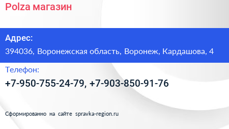 Polza, магазин по адресу 394036, Воронежская область, Воронеж, Кардашова, 4 в дальнейшем Организация, размещена в следующих категориях: