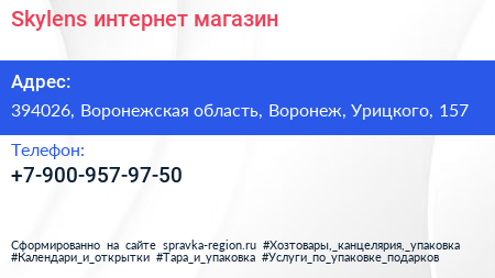 Skylens, интернет-магазин по адресу 394026, Воронежская область, Воронеж, Урицкого, 157 в дальнейшем Организация, размещена в следующих категориях: