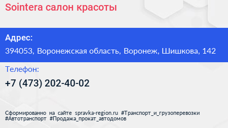Sointera, салон красоты по адресу 394053, Воронежская область, Воронеж, Шишкова, 142 в дальнейшем Организация, размещена в следующих категориях: