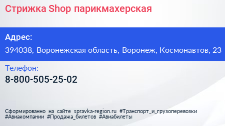 Стрижка Shop, парикмахерская по адресу 394038, Воронежская область, Воронеж, Космонавтов, 23 в дальнейшем Организация, размещена в следующих категориях: