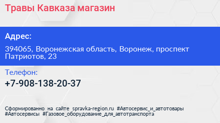 Травы Кавказа, магазин по адресу 394065, Воронежская область, Воронеж, проспект Патриотов, 23 в дальнейшем Организация, размещена в следующих категориях: