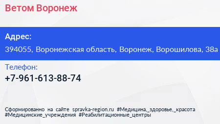 Ветом-Воронеж по адресу 394055, Воронежская область, Воронеж, Ворошилова, 38а в дальнейшем Организация, размещена в следующих категориях: