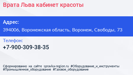 Врата Льва, кабинет красоты по адресу 394006, Воронежская область, Воронеж, Свободы, 73 в дальнейшем Организация, размещена в следующих категориях: