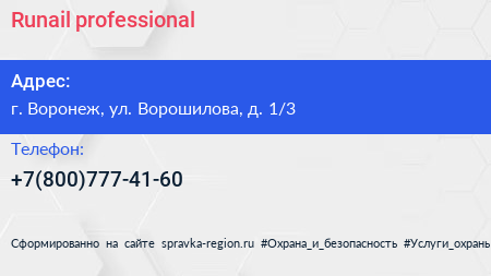Runail professional по адресу г. Воронеж, ул. Ворошилова, д. 1/3 в дальнейшем Организация, размещена в следующих категориях:
