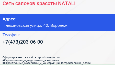 Сеть салонов красоты NATALI по адресу Плехановская улица, 42, Воронеж в дальнейшем Организация, размещена в следующих категориях: