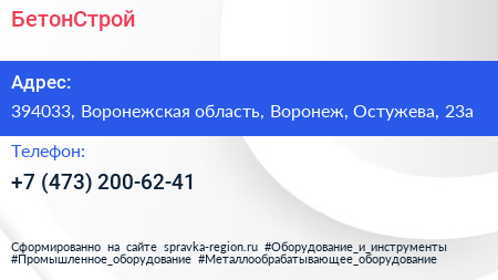 БетонСтрой по адресу 394033, Воронежская область, Воронеж, Остужева, 23а в дальнейшем Организация, размещена в следующих категориях: