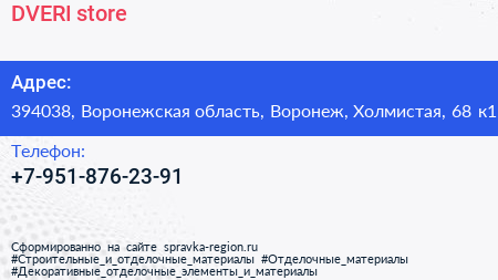 DVERI store по адресу 394038, Воронежская область, Воронеж, Холмистая, 68 к1 в дальнейшем Организация, размещена в следующих категориях: