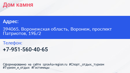 Дом камня по адресу 394065, Воронежская область, Воронеж, проспект Патриотов, 19Б/2 в дальнейшем Организация, размещена в следующих категориях: