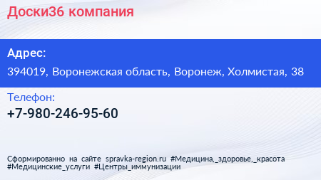 Доски36, компания по адресу 394019, Воронежская область, Воронеж, Холмистая, 38 в дальнейшем Организация, размещена в следующих категориях: