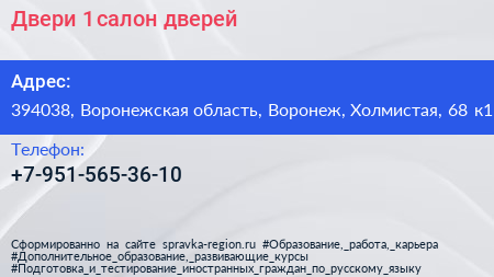 Двери №1, салон дверей по адресу 394038, Воронежская область, Воронеж, Холмистая, 68 к1 в дальнейшем Организация, размещена в следующих категориях: