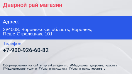 Дверной рай, магазин по адресу 394038, Воронежская область, Воронеж, Пеше-Стрелецкая, 101 в дальнейшем Организация, размещена в следующих категориях: