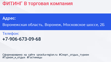 ФИТИНГ-В, торговая компания по адресу Воронежская область, Воронеж, Московское шоссе, 2Б в дальнейшем Организация, размещена в следующих категориях: