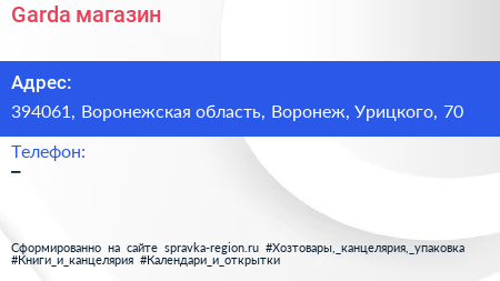 Garda, магазин по адресу 394061, Воронежская область, Воронеж, Урицкого, 70 в дальнейшем Организация, размещена в следующих категориях: