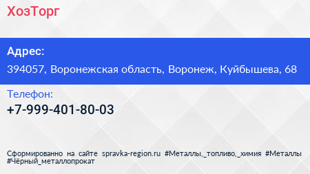 ХозТорг по адресу 394057, Воронежская область, Воронеж, Куйбышева, 68 в дальнейшем Организация, размещена в следующих категориях: