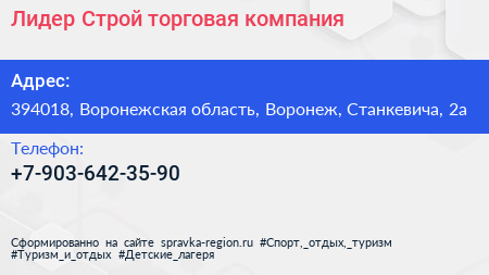 Лидер-Строй, торговая компания по адресу 394018, Воронежская область, Воронеж, Станкевича, 2а в дальнейшем Организация, размещена в следующих категориях: