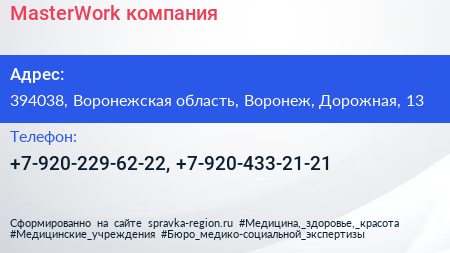 MasterWork, компания по адресу 394038, Воронежская область, Воронеж, Дорожная, 13 в дальнейшем Организация, размещена в следующих категориях: