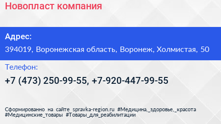 Новопласт, компания по адресу 394019, Воронежская область, Воронеж, Холмистая, 50 в дальнейшем Организация, размещена в следующих категориях: