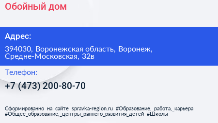 Обойный дом по адресу 394030, Воронежская область, Воронеж, Средне-Московская, 32в в дальнейшем Организация, размещена в следующих категориях: