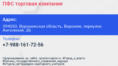 ПФС, торговая компания по адресу 394050, Воронежская область, Воронеж, переулок Ангелиной, 2Б в дальнейшем Организация, размещена в следующих категориях: