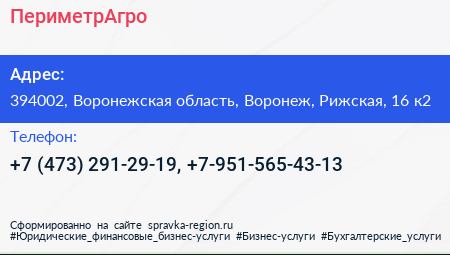 ПериметрАгро по адресу 394002, Воронежская область, Воронеж, Рижская, 16 к2 в дальнейшем Организация, размещена в следующих категориях: