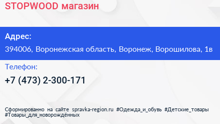 STOPWOOD, магазин по адресу 394006, Воронежская область, Воронеж, Ворошилова, 1в в дальнейшем Организация, размещена в следующих категориях: