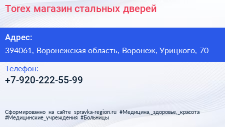 Torex, магазин стальных дверей по адресу 394061, Воронежская область, Воронеж, Урицкого, 70 в дальнейшем Организация, размещена в следующих категориях: