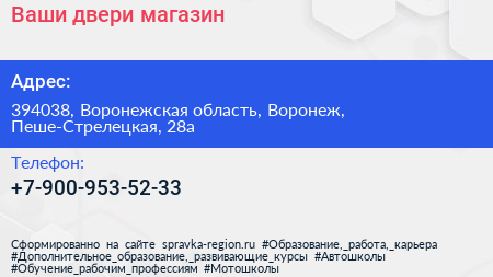Ваши двери, магазин по адресу 394038, Воронежская область, Воронеж, Пеше-Стрелецкая, 28а в дальнейшем Организация, размещена в следующих категориях:
