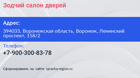 Зодчий, салон дверей по адресу 394033, Воронежская область, Воронеж, Ленинский проспект, 158/2 в дальнейшем Организация, размещена в следующих категориях: