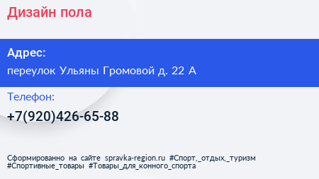 Дизайн пола по адресу переулок Ульяны Громовой д. 22 А в дальнейшем Организация, размещена в следующих категориях: