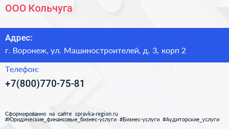 ООО «Кольчуга» по адресу г. Воронеж, ул. Машиностроителей, д. 3, корп 2 в дальнейшем Организация, размещена в следующих категориях: