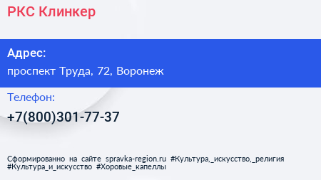 РКС Клинкер по адресу проспект Труда, 72, Воронеж в дальнейшем Организация, размещена в следующих категориях: