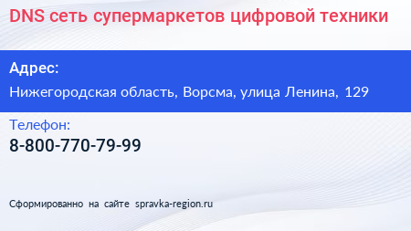 DNS, сеть супермаркетов цифровой техники по адресу Нижегородская область, Ворсма, улица Ленина, 129 в дальнейшем Организация, размещена в следующих категориях: