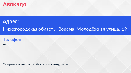 Авокадо по адресу Нижегородская область, Ворсма, Молодёжная улица, 19 в дальнейшем Организация, размещена в следующих категориях: