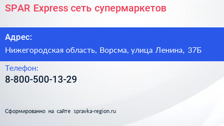 SPAR Express, сеть супермаркетов по адресу Нижегородская область, Ворсма, улица Ленина, 37Б в дальнейшем Организация, размещена в следующих категориях: