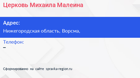 Церковь Михаила Малеина по адресу Нижегородская область, Ворсма, в дальнейшем Организация, размещена в следующих категориях: