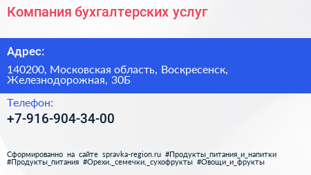 Компания бухгалтерских услуг по адресу 140200, Московская область, Воскресенск, Железнодорожная, 30Б в дальнейшем Организация, размещена в следующих категориях: