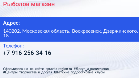 Рыболов, магазин по адресу 140202, Московская область, Воскресенск, Дзержинского, 18 в дальнейшем Организация, размещена в следующих категориях: