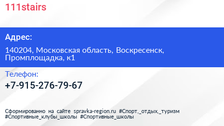111stairs по адресу 140204, Московская область, Воскресенск, Промплощадка, к1 в дальнейшем Организация, размещена в следующих категориях:
