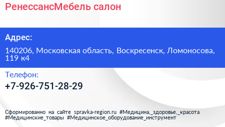 РенессансМебель, салон по адресу 140206, Московская область, Воскресенск, Ломоносова, 119 к4 в дальнейшем Организация, размещена в следующих категориях: