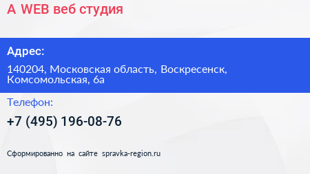 A+WEB, веб-студия по адресу 140204, Московская область, Воскресенск, Комсомольская, 6а в дальнейшем Организация, размещена в следующих категориях: