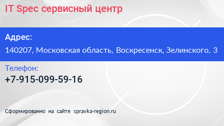 IT-Spec, сервисный центр по адресу 140207, Московская область, Воскресенск, Зелинского, 3 в дальнейшем Организация, размещена в следующих категориях:
