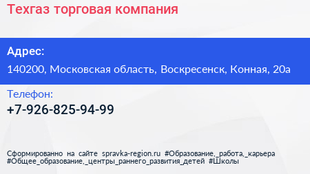 Техгаз, торговая компания по адресу 140200, Московская область, Воскресенск, Конная, 20а в дальнейшем Организация, размещена в следующих категориях: