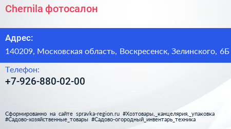 Chernila, фотосалон по адресу 140209, Московская область, Воскресенск, Зелинского, 6Б в дальнейшем Организация, размещена в следующих категориях: