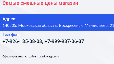 Самые смешные цены, магазин по адресу 140205, Московская область, Воскресенск, Менделеева, 21 в дальнейшем Организация, размещена в следующих категориях: