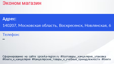 Эконом, магазин по адресу 140207, Московская область, Воскресенск, Новлянская, 6 в дальнейшем Организация, размещена в следующих категориях: